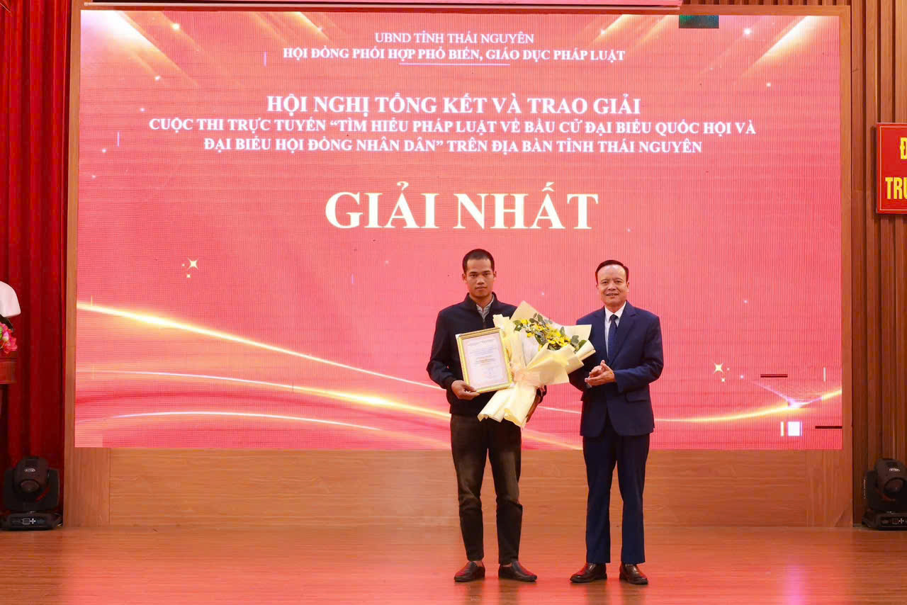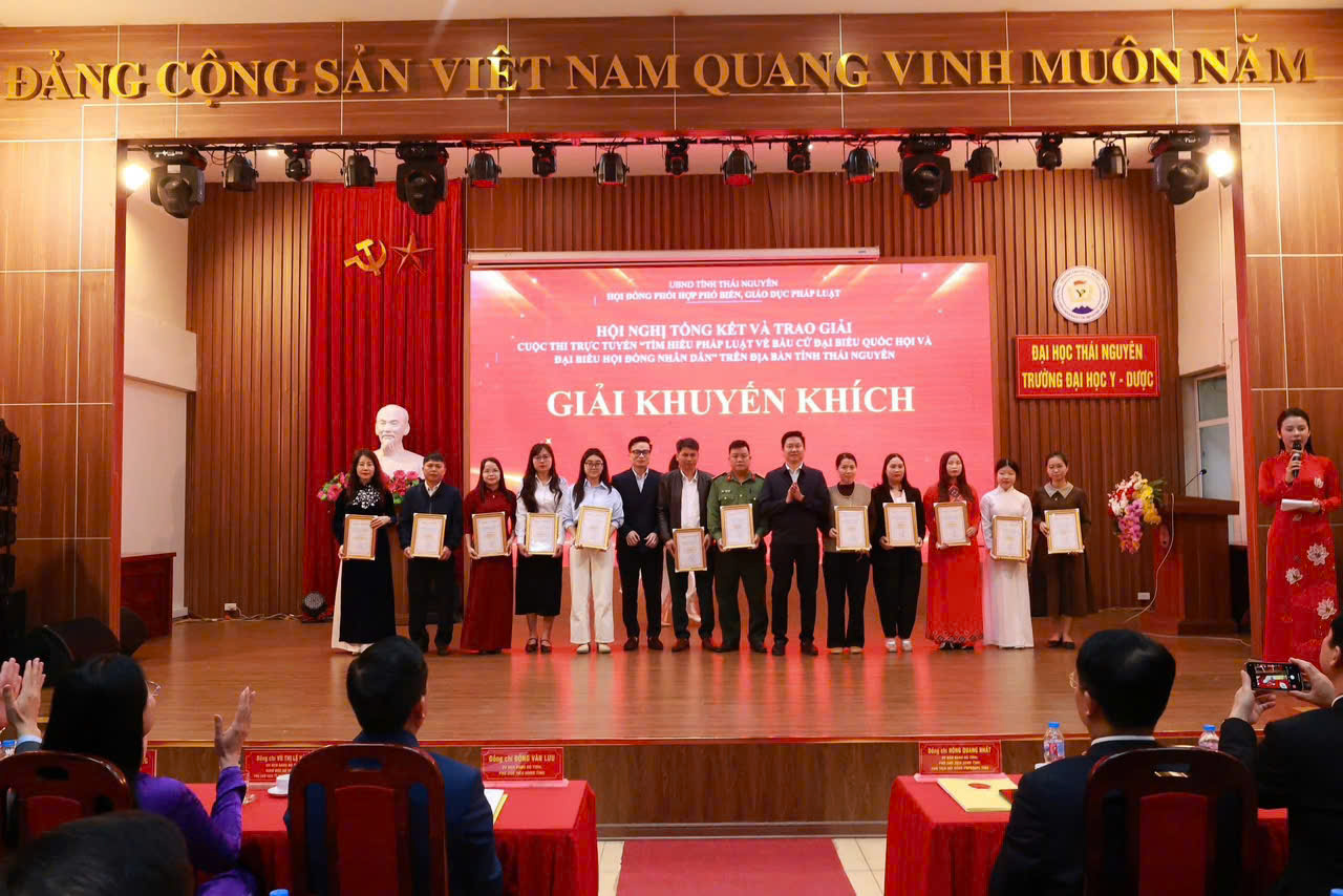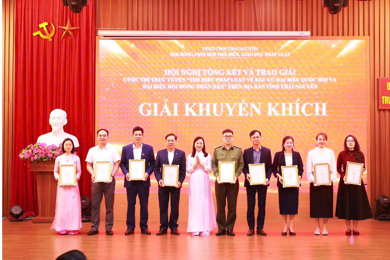 Sáng ngày 09/3/2026, Hội đồng Phối hợp phổ biến, giáo dục pháp luật tỉnh Thái Nguyên tổ chức Hội nghị tổng kết và trao giải Cuộc thi trực tuyến “Tìm hiểu pháp luật về bầu cử đại biểu Quốc hội và đại biểu Hội đồng nhân dân” trên địa bàn tỉnh.