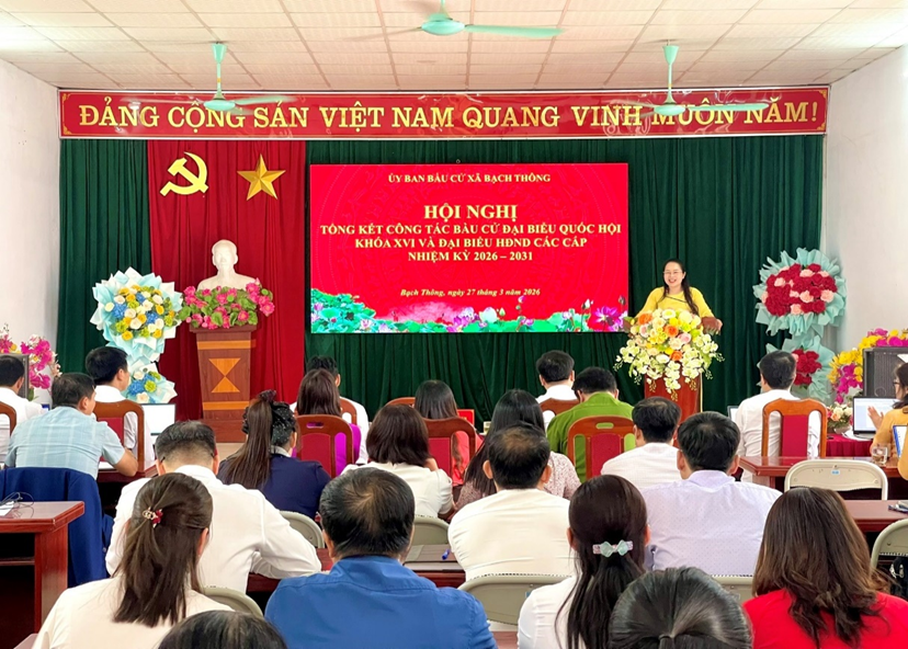 Vừa qua, Ủy ban bầu cử xã Bạch Thông đã tổ chức Hội nghị tổng kết công tác bầu cử đại biểu Quốc hội khóa XVI và đại biểu HĐND các cấp nhiệm kỳ 2026 – 2031. Cuộc bầu cử trên địa bàn diễn ra an toàn, đúng luật, thực sự là ngày hội của toàn dân. Theo báo cáo, tỷ lệ cử tri tham gia bầu cử đạt 100%, với 5.844/5.844 cử tri tham gia bầu đại biểu Quốc hội và HĐND tỉnh; 5.766/5.766 cử tri tham gia bầu HĐND xã. Xã đã bầu đủ 18 đại biểu HĐND khóa II, bảo đảm đúng cơ cấu. Chất lượng đại biểu được nâng lên, 100% có trình độ đại học trở lên; tỷ lệ nữ đạt 38,9%, đại biểu dân tộc thiểu số 83,3%, đại biểu trẻ 38,9%. Tại Hội nghị, các đại biểu đã chia sẻ kinh nghiệm tổ chức bầu cử từ cơ sở; lãnh đạo xã ghi nhận, biểu dương sự vào cuộc trách nhiệm của cả hệ thống chính trị và Nhân dân. Nhân dịp này, Ủy ban bầu cử xã đã trao Giấy chứng nhận cho các đại biểu trúng cử; đồng thời khen thưởng 11 tập thể và nhiều cá nhân có thành tích xuất sắc trong công tác bầu cử, góp phần vào thành công chung của địa phương./. Một số hình ảnh tại Hội nghị: