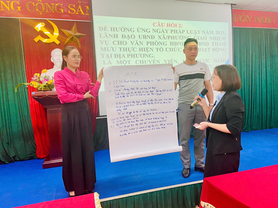 Các nhóm học viên trình bày kết quả thảo luận, trao đổi giải pháp nâng cao hiệu quả tuyên truyền, phổ biến pháp luật tại cơ sở