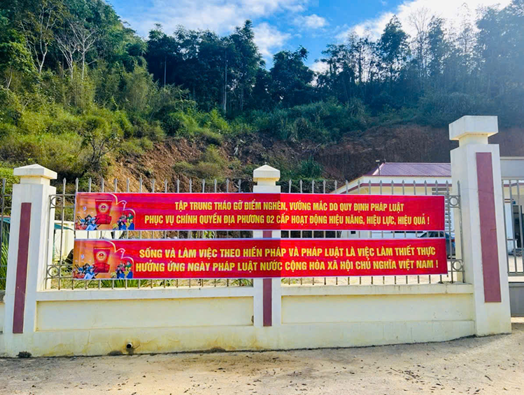 Ảnh: UBND xã Tân Kỳ treo băng rôn tại trụ sở hưởng ứng Ngày Pháp luật Việt Nam
