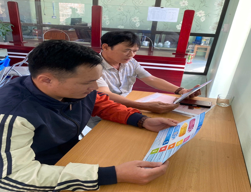 Ảnh: Người dân nghiên cứu tờ rơi tìm hiểu pháp luật tại Trung tâm Phục vụ hành chính công xã