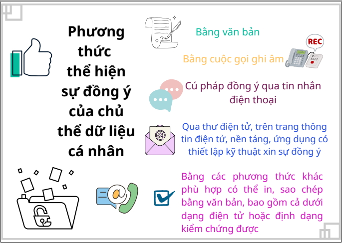 INFOGRAPHICS: PHƯƠNG THỨC THỂ HIỆN SỰ ĐỒNG Ý CỦA CHỦ THỂ DỮ LIỆU CÁ NHÂN