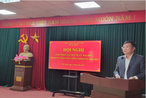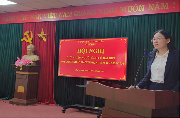 Chiều ngày 14/01/2026, Sở Tư pháp tổ chức Hội nghị giới thiệu người ứng cử đại biểu Hội đồng nhân dân tỉnh, nhiệm kỳ 2026-2031.