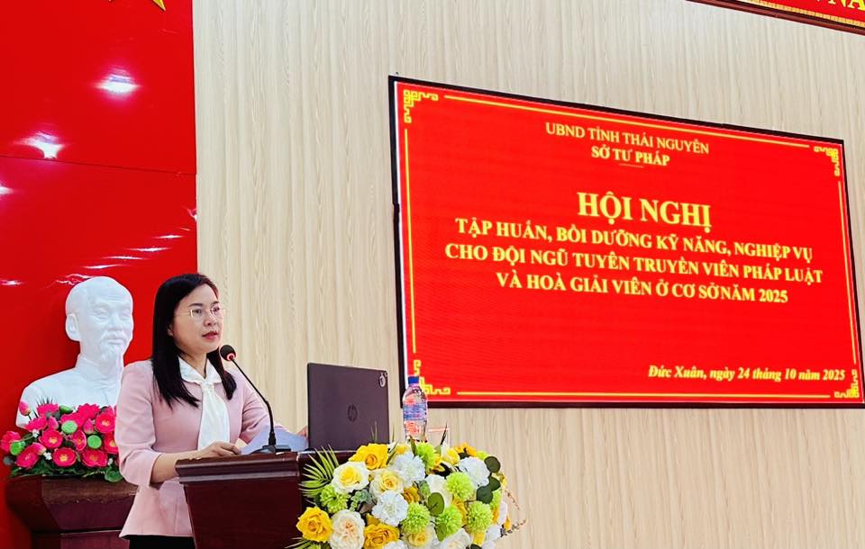 Ngày 24/10/2025, Sở Tư pháp tỉnh Thái Nguyên phối hợp với UBND phường Đức Xuân tổ chức Hội nghị bồi dưỡng kiến thức pháp luật cho đội ngũ tuyên truyền viên pháp luật và hoà giải viên ở cơ sở năm 2025 trên địa bàn.