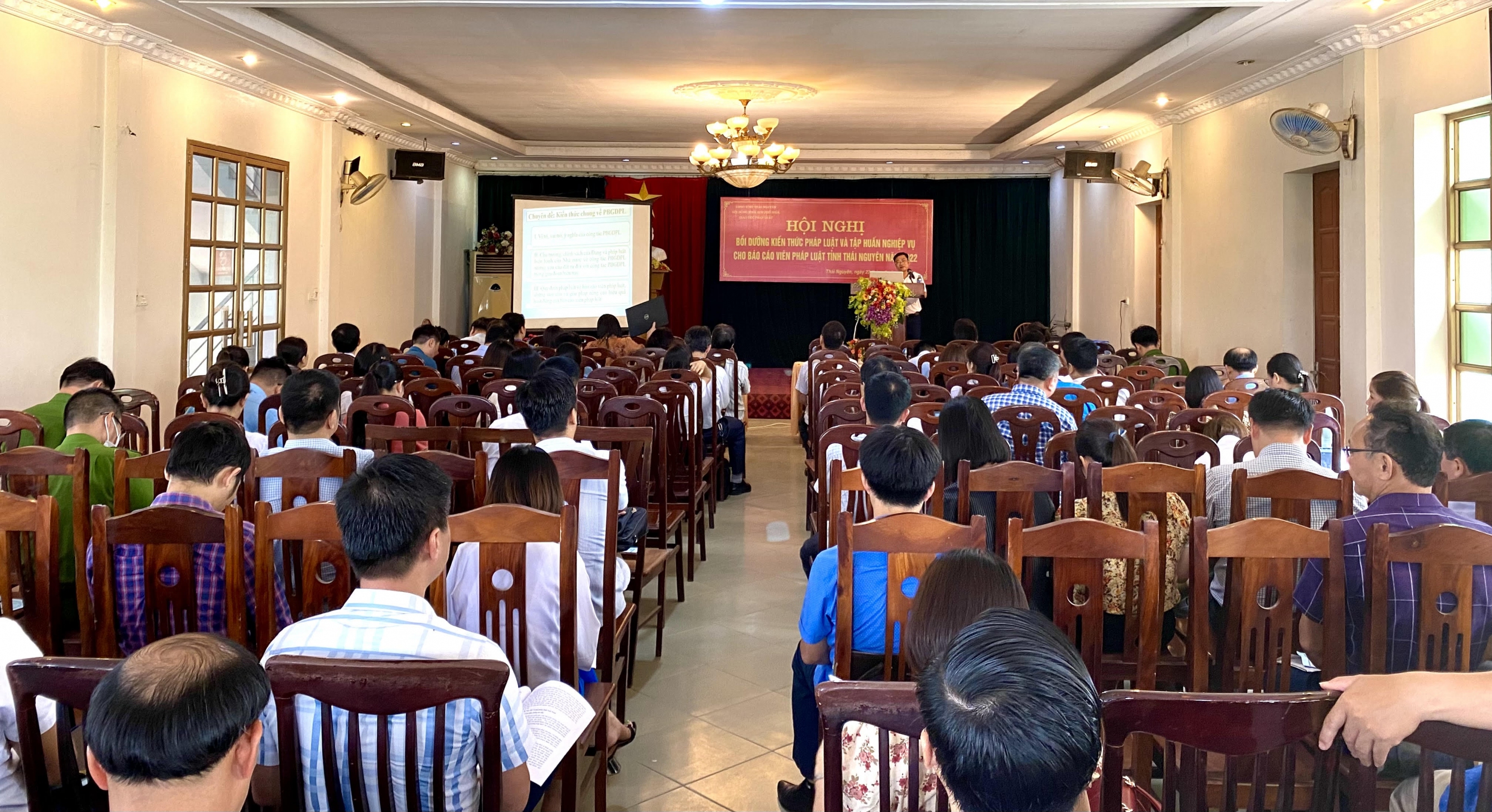 Ngày 22/6/2022, Sở Tư pháp – Cơ quan thường trực của Hội đồng phối hợp, phổ biến giáo dục pháp luật tỉnh (PBGDPL) tổ chức Hội nghị bồi dưỡng kiến thức pháp luật và tập huấn nghiệp vụ cho đội ngũ Báo cáo viên pháp luật cấp tỉnh năm 2022. Tham dự hội nghị có đồng chí Lương Hữu Phước - Phó Chủ tịch Hội đồng phối hợp PBGDPL tỉnh Thái Nguyên, Phó Giám đốc Sở Tư pháp; các đại biểu là Báo cáo viên pháp luật cấp tỉnh thuộc các sở, ban, ngành, đoàn thể và báo cáo viên cấp huyện đến từ các huyện, thành phố trên địa bàn tỉnh.