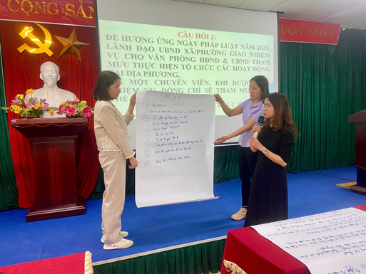 Các nhóm học viên trình bày kết quả thảo luận, trao đổi giải pháp nâng cao hiệu quả tuyên truyền, phổ biến pháp luật tại cơ sở