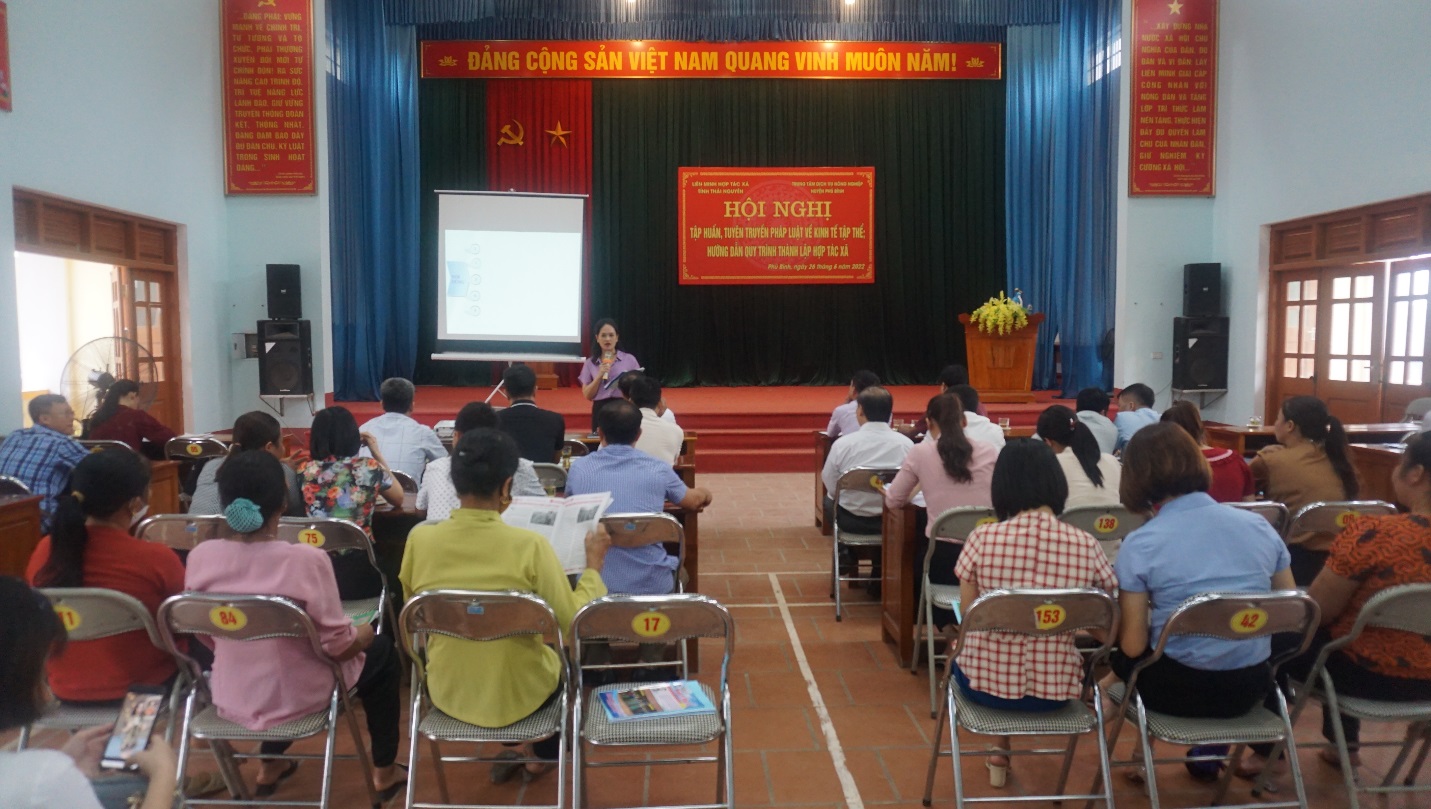 Vừa qua, Liên minh Hợp tác xã tỉnh Thái Nguyên phối hợp với Trung tâm Dịch vụ nông nghiệp huyện Phú Bình (tỉnh Thái Nguyên) tổ chức lớp tập huấn, tuyên truyền pháp luật về kinh tế tập thể và hướng dẫn quy trình thành lập hợp tác xã cho tổ khuyến nông cộng đồng các xã Thượng Đình, Điềm Thụy, Nhã Lộng, Nga My và Hà Châu (huyện Phú Bình).