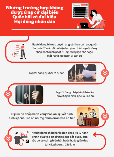 Infographics: Những trường hợp không được ứng cử đại biểu Quốc hội và đại biểu Hội đồng nhân dân