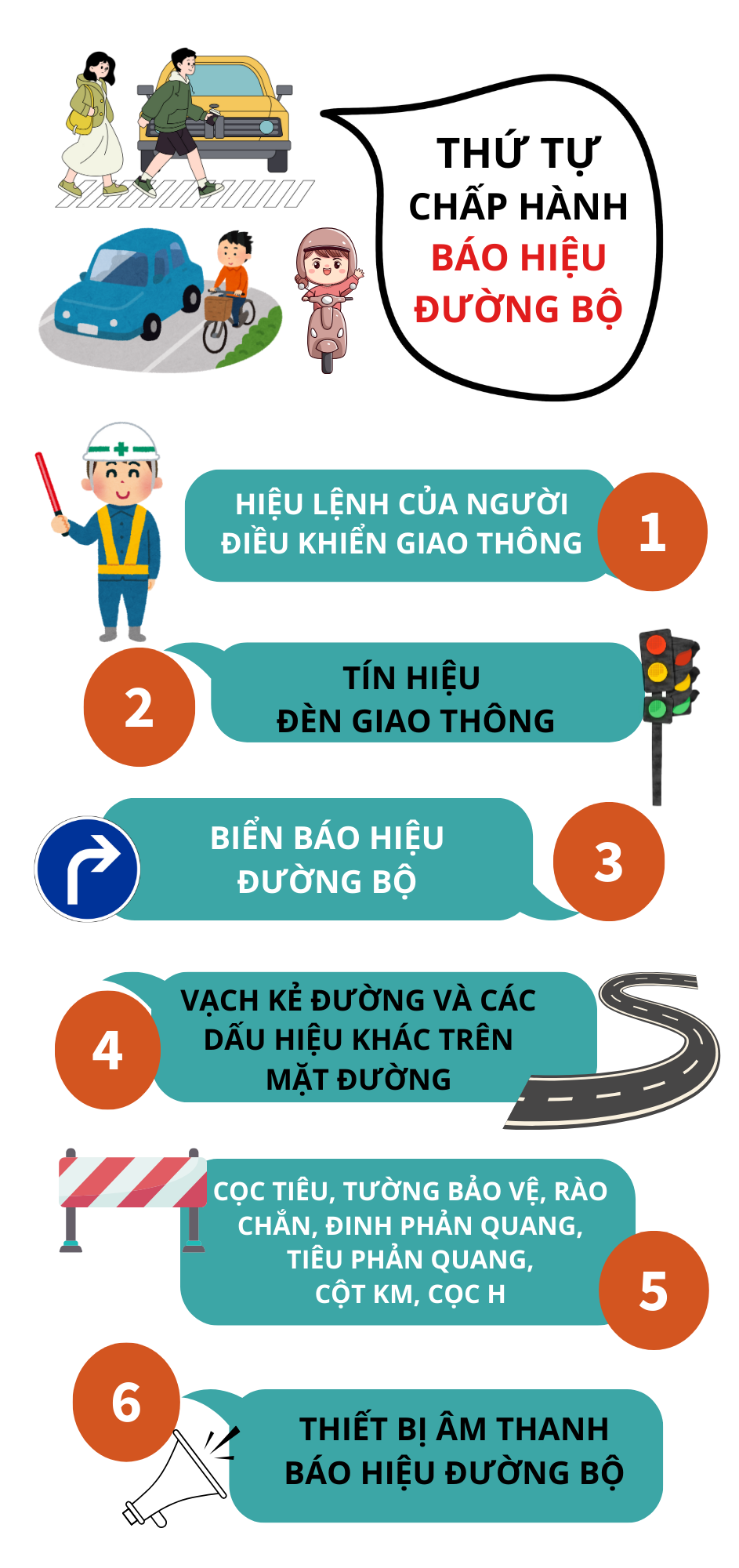 Infographics: Thứ tự chấp hành báo hiệu đường bộ