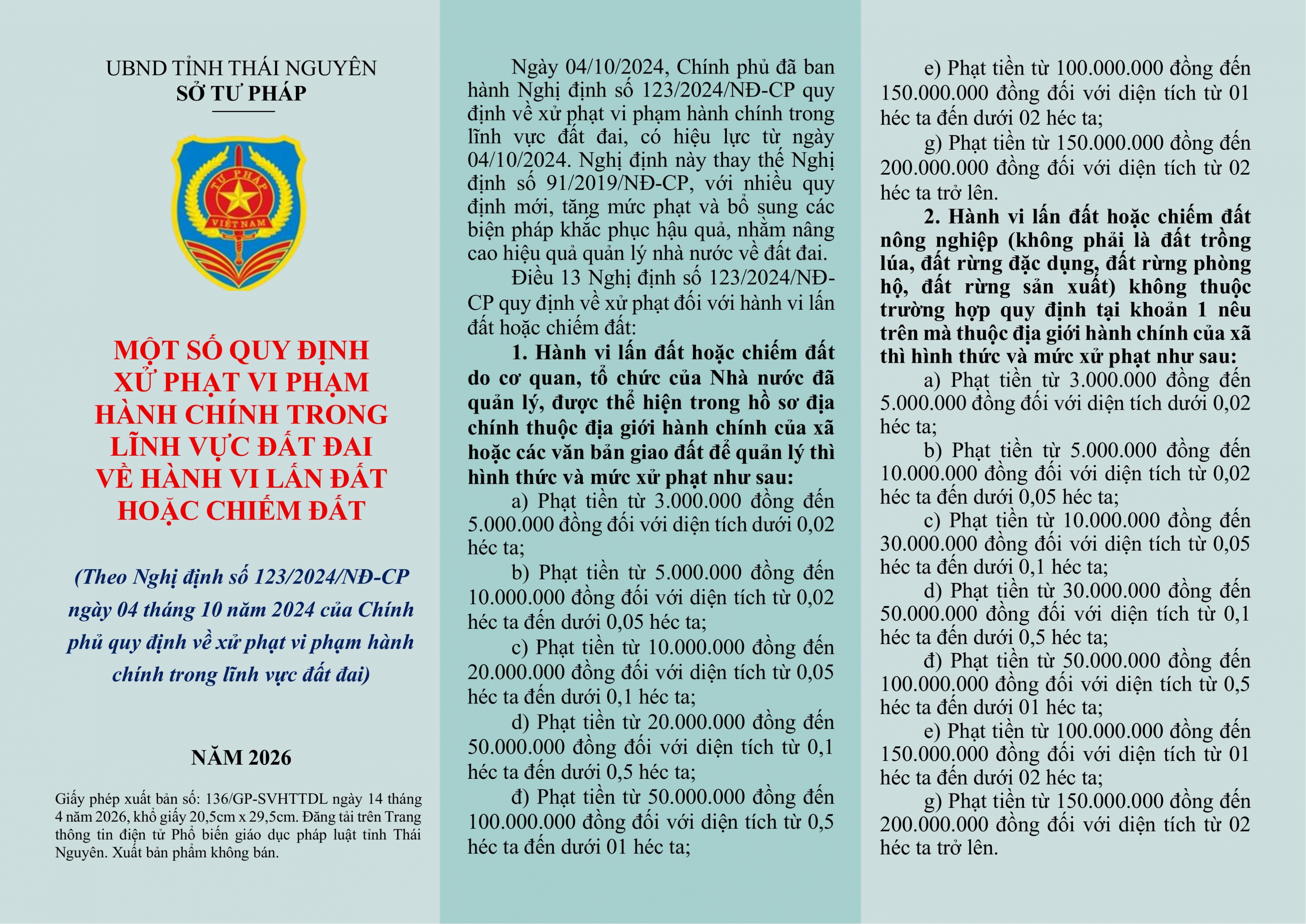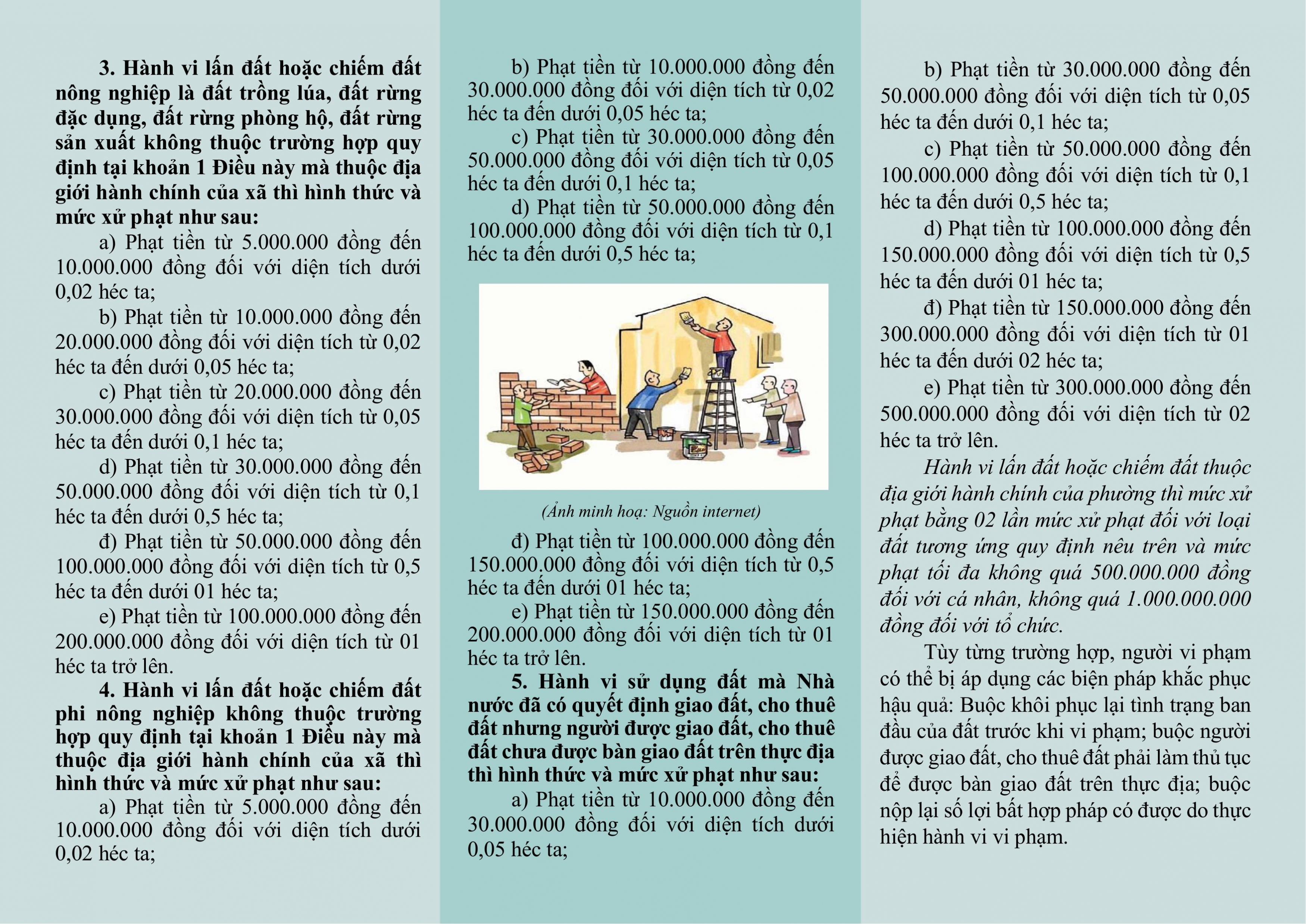 TỜ GẤP: MỘT SỐ QUY ĐỊNH XỬ PHẠT VI PHẠM HÀNH CHÍNH TRONG LĨNH VỰC ĐẤT ĐAI VỀ HÀNH VI LẤN ĐẤT HOẶC CHIẾM ĐẤT